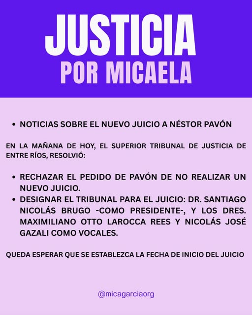 En septiembre de 2025 se resolvió que Pavón fuera sometido a un nuevo juicio. En esa oportunidad, la Sala Penal del STJ confirmó una resolución de la Cámara de Casación Penal y anuló el fallo del Tribunal de Juicios y Apelaciones de Gualeguay en lo referido a la intervención de Pavón en la causa que investigó el femicidio de Micaela García, ocurrido el 1° de abril de 2017 en Gualeguay.